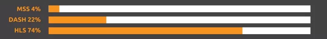 对于自适应标准,HLS继续占据着74%的市场份额(去年为72%),但DASH也在增长现在拥有22%(从去年21%上升)。该报告称HLS是“黄金标准”显示其规格的成熟,持续改进以及大量设备支持使其成为任何自适应码率策略的重心。