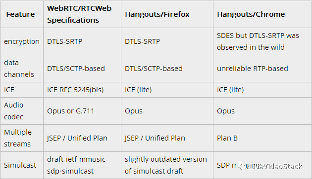FireFox Hangouts和Chrome Hangouts WebRTC规范比较