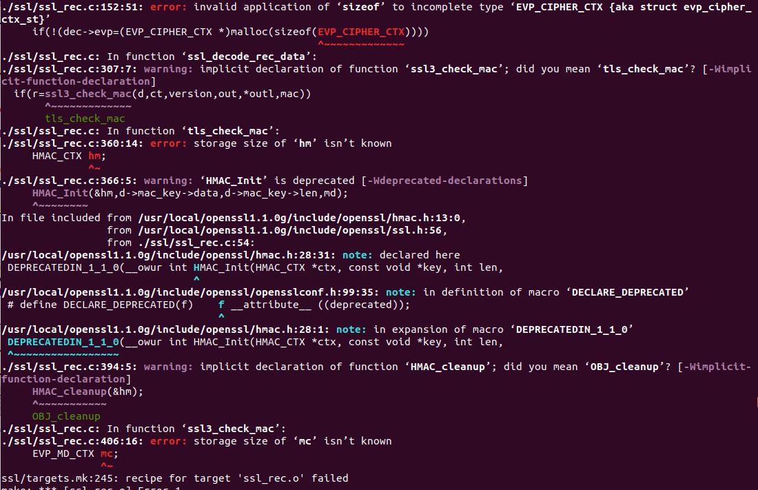 此处需要加上-DOPENSSL打开程序中的宏,但是即使我指定了对应的openssl,pcap的路径,版本也是正确的,也会在make的时候会出现以下错误: