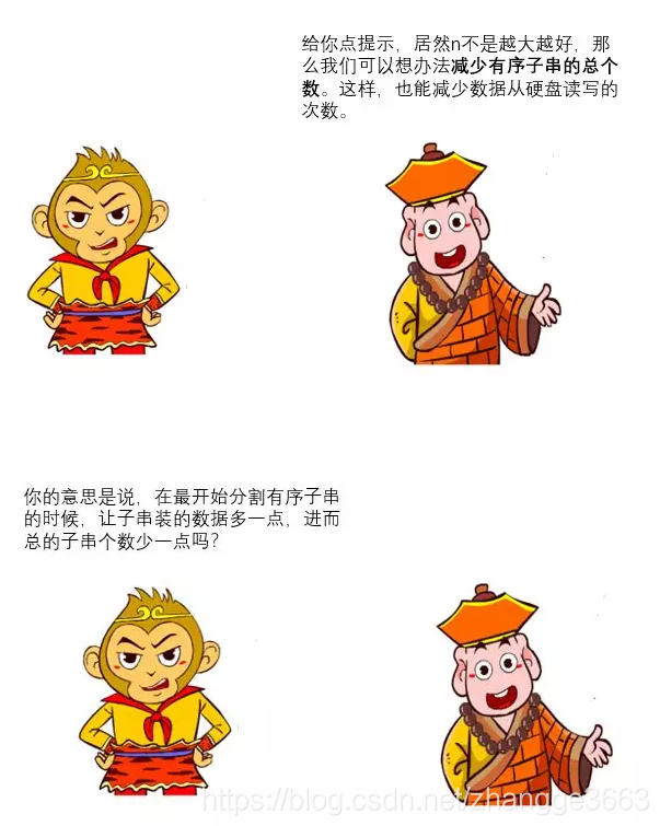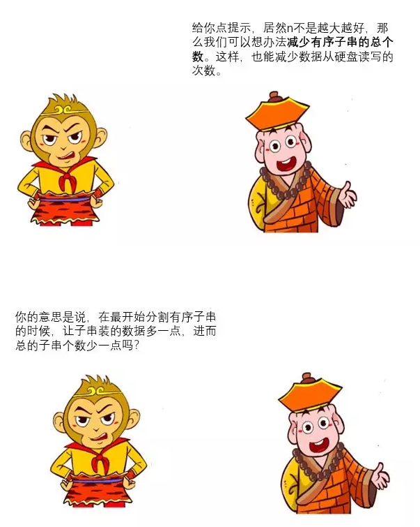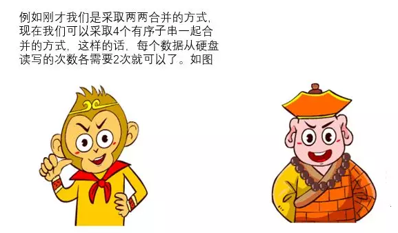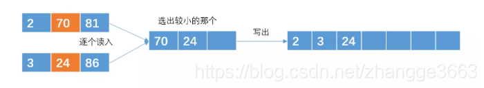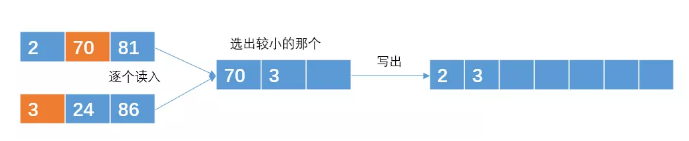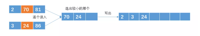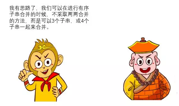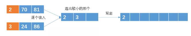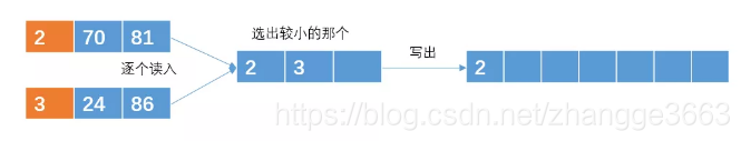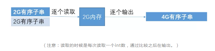 为了方便,我们把排序好的2G有序数据称之为有序子串吧。接着我们可以把两个小的有序子串合并成一个大的有序子串。