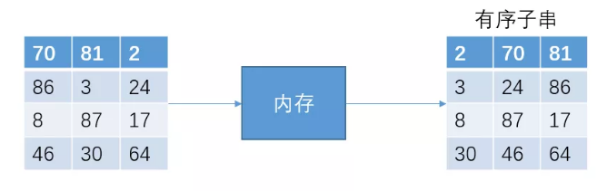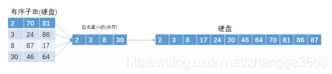 例如我们可以从12个数据读取3个存到内存中,然后从内存中选出最小的那个数放进子串p1里;