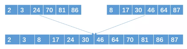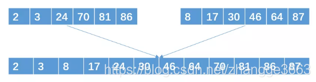 再把两个包含6个int的有序子串合并成一个包含12个int数据的最终有序子串。