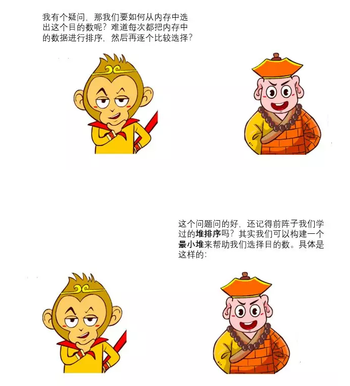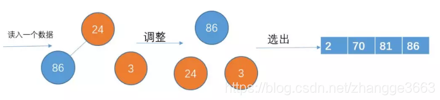 否则,把这个数暂放在一边,暂时不处理。之后一样需要调整堆结构,从堆顶选择一个数写入到p1中。