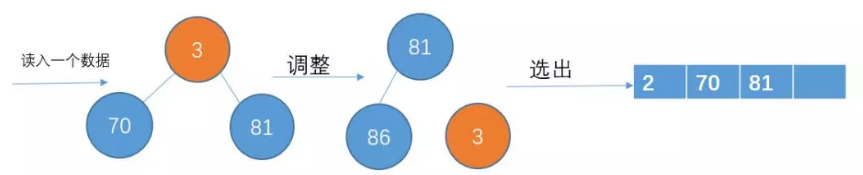 读入下一个数3,比70小,暂放一边,不加入堆结构中: