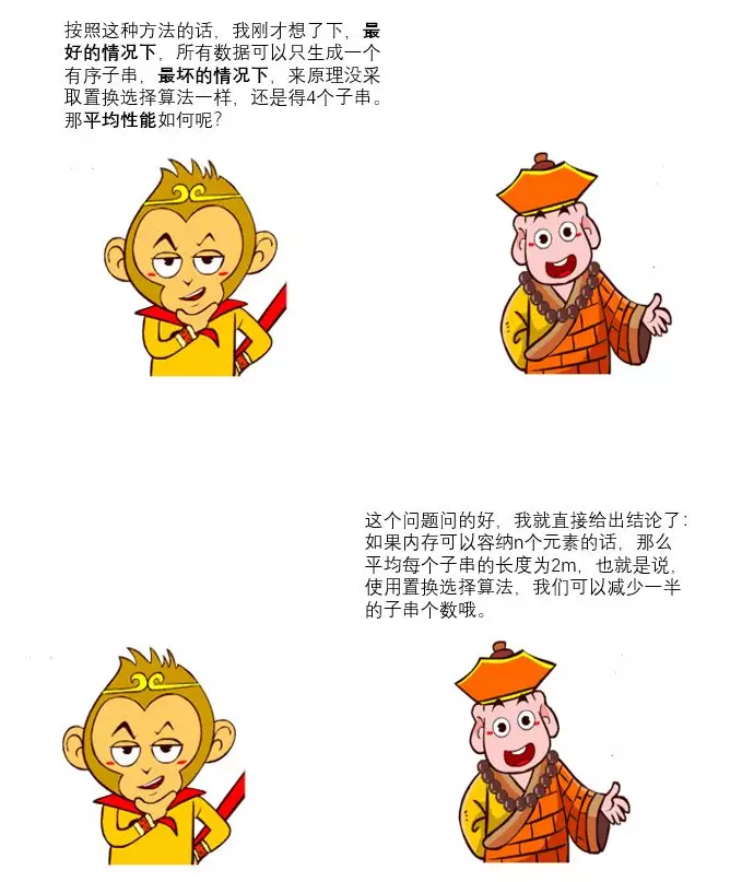 之后再从剩余的9个数据读取一个放到内存中,然后再从内存中选出一个数放进子串p1里,这个数必须满足比p1中的其他数大,且在内存中尽量小。