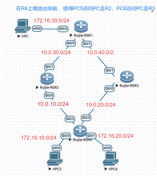 锐捷路由策略(route-map)+前缀列表(prefix-list)基础实验