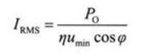 式中,Po为开关电源的输出功率,η为电源效率,umin为交流输入电压的最小值,cosφ为开关电源的功率因数。