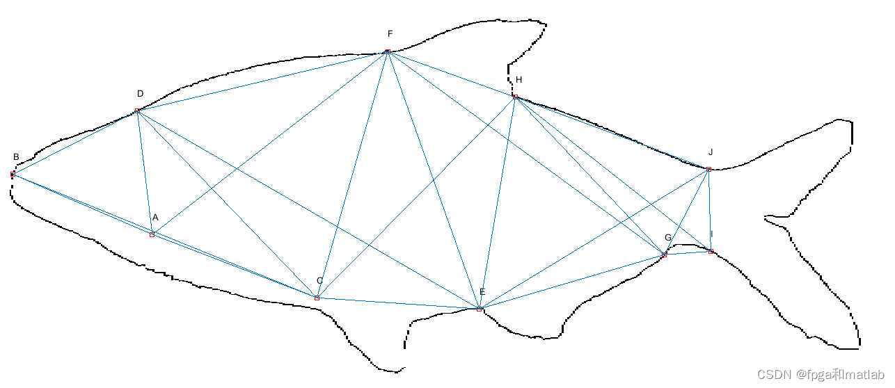 这里,首先确定鱼嘴巴上的点,然后根据鱼身体的各个部分比例,依次提取各个点的位置。