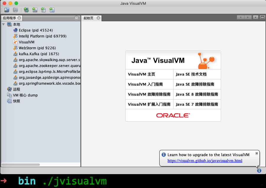 基于图形界面的 Java 应用程序监视和分析工具,可以用于监视本地或远程的 Java 应用程序。以下是 jvisualVM 命令的一些详解: