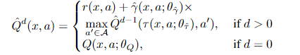 可以是内在和外在奖励的组合。我们根据d-depth推出的折扣奖励计算预期回报: