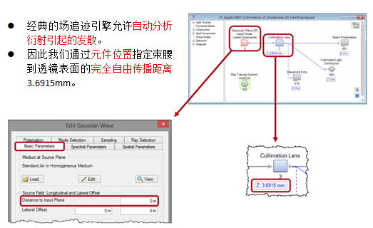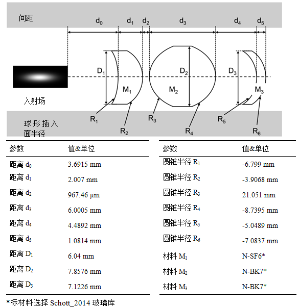 — 通过折射透镜系统对发散的二极管激光光源进行准直