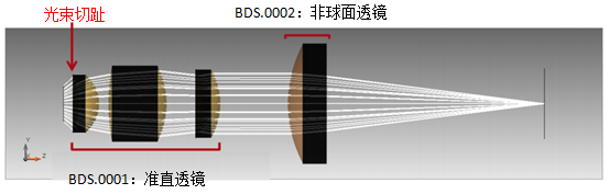在该示例中分析了一个准直透镜系统。尤其对准直光学系统在孔径处的光束切趾的影响进行了研究