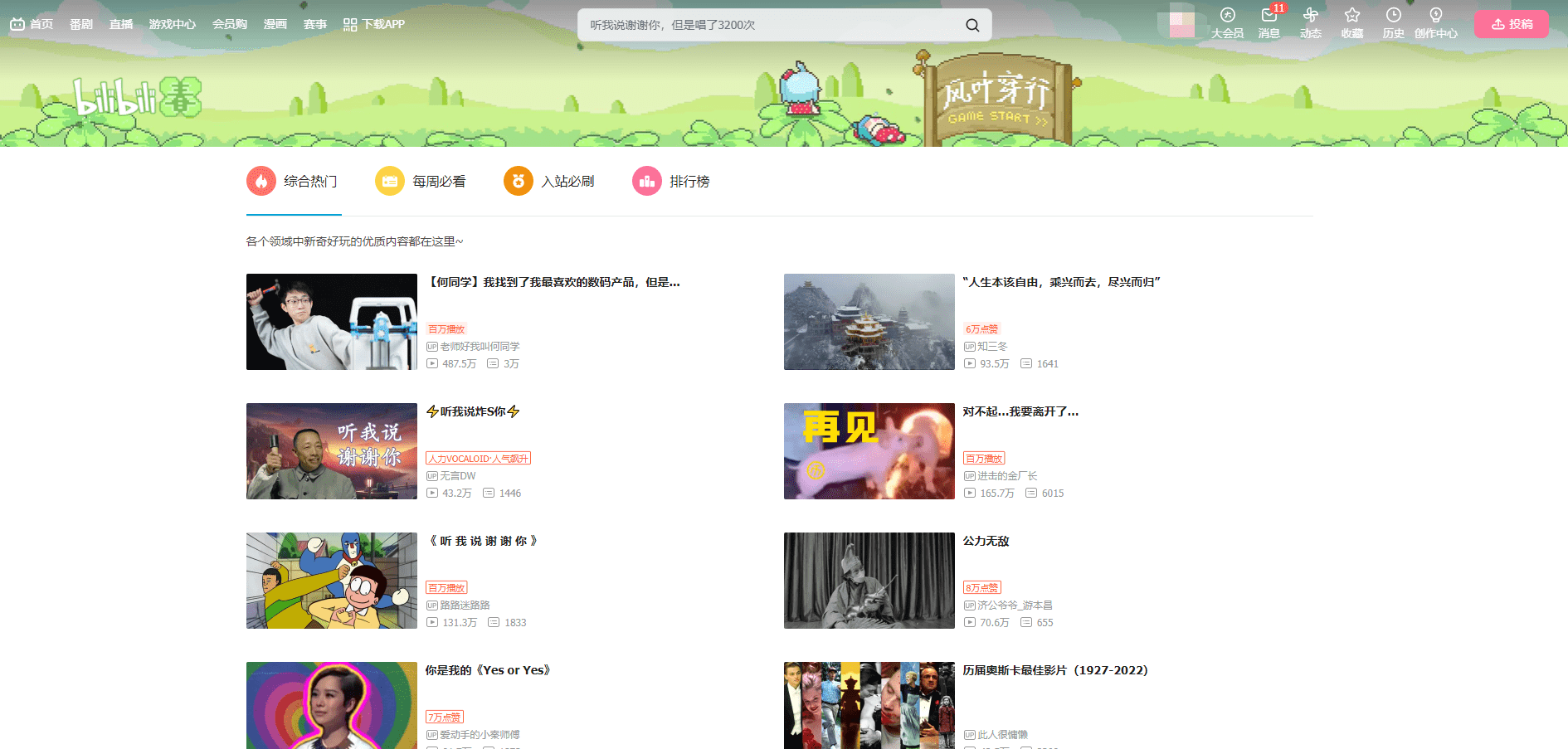 一、哔哩哔哩官方平台:进入B站就有热门视频排行榜,点击即可查看综合热门视频、视频排行榜