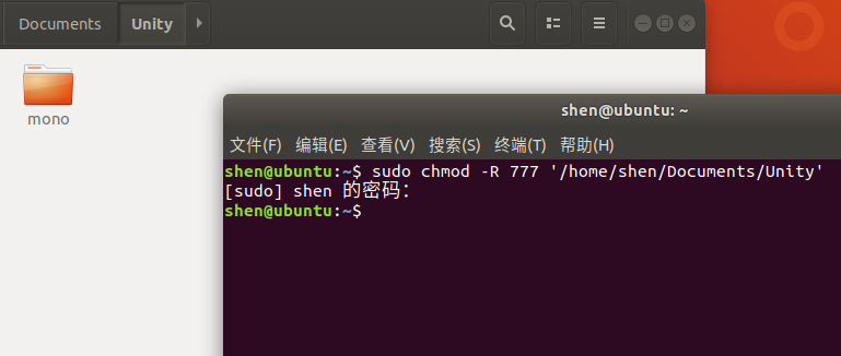 4、为了方便后面执行脚本,获取mono文件夹权限: