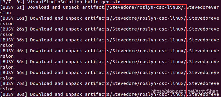 <5.2>接着再build一次会download roslyn-csc-linux,但一直busy,还是Ctrl+Z结束。