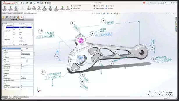 4.SOLIDWORKS Inspection:机加工后的检查呢?SOLIDWORKS Inspection 2018现在可以自动生成3D注释,然后生成检查报告,类似于图6所示的二维图纸中的步骤。