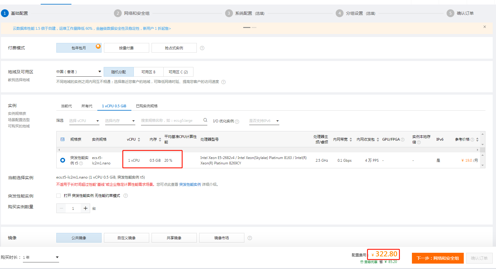 在官网选择ECS相关产品,在产品选购页面可以见到如下的内容: