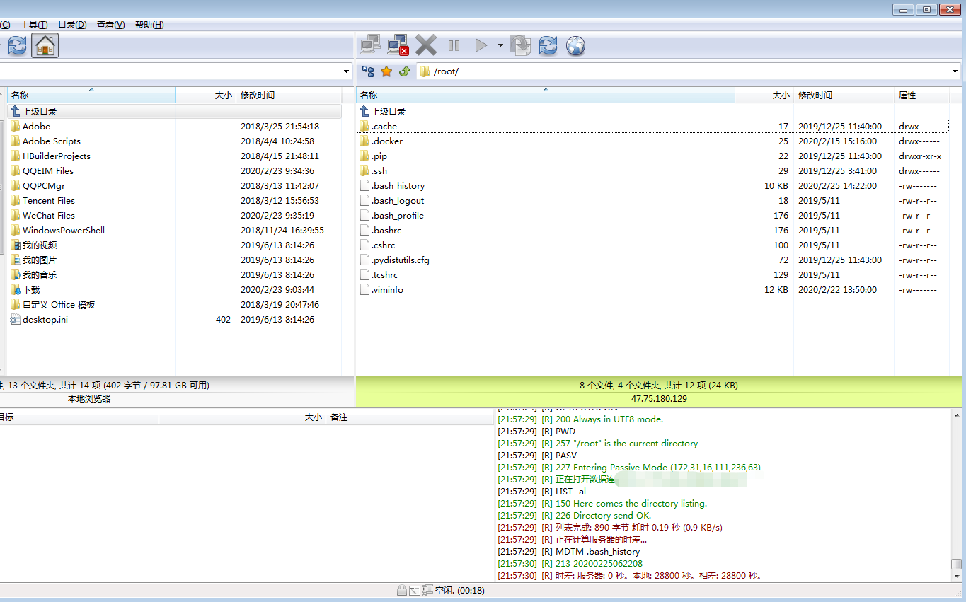 往云主机传输文件,可以使用ssh自带的scp命令: