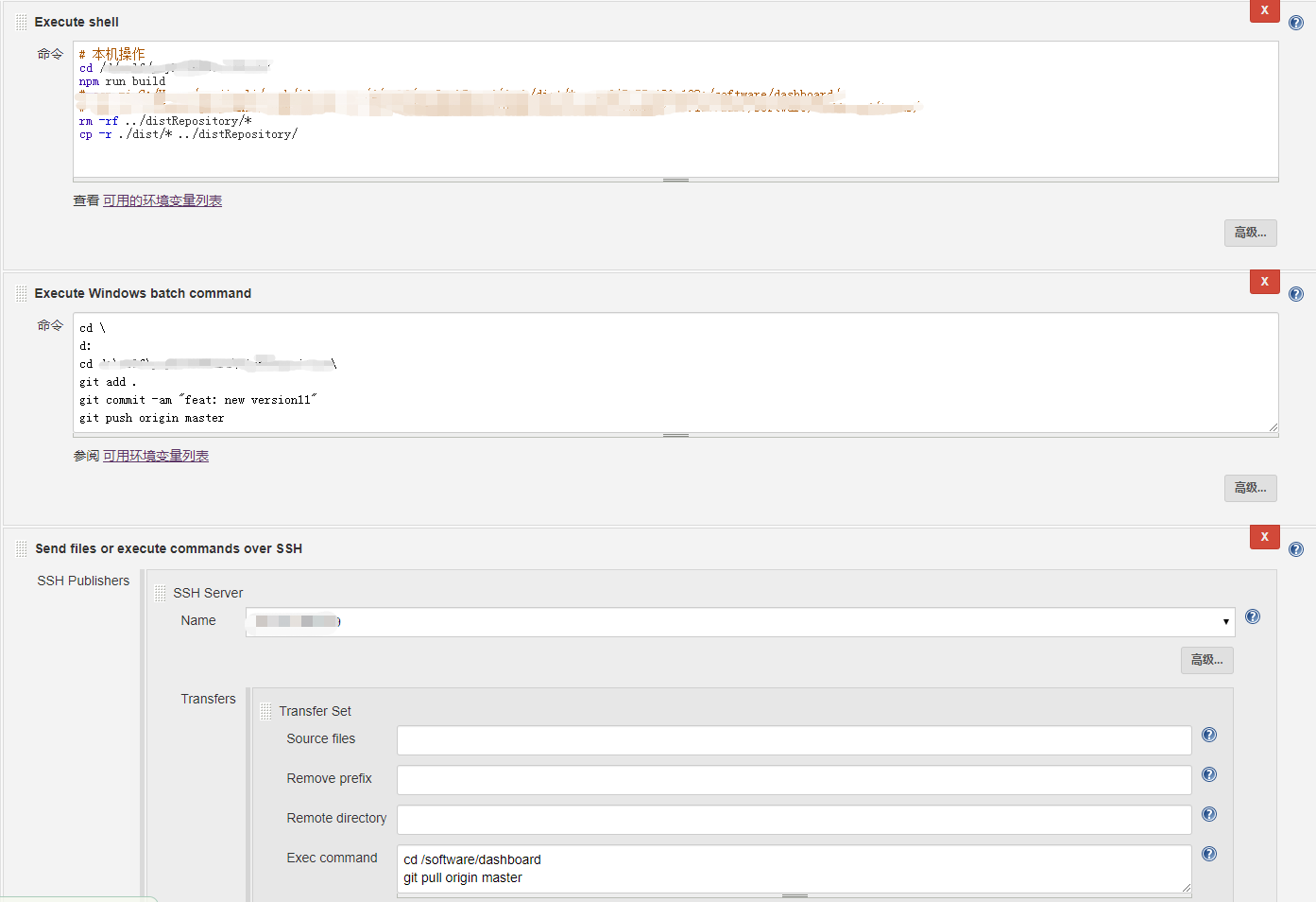 项目配置中其他的内容(源码管理、构建触发器、构建环境等)都无需配置,我们直接配置构建脚本: