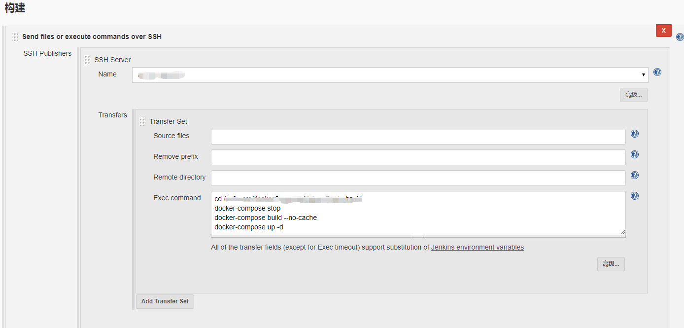 - jenkins远程登录云主机,执行命令:无缓存重新构建服务并重启
