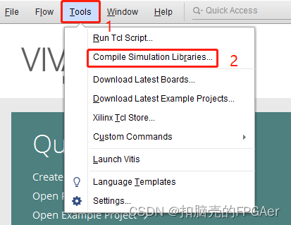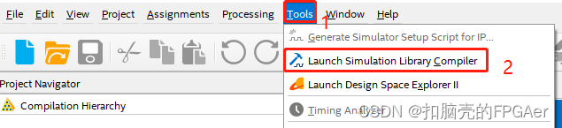在Quartus软件中,找到Tools —> Launch Simulation Library Compiler