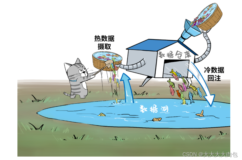 湖里的“新鲜”数据可以流到仓里,甚至可以直接被数仓使用,而仓里的“不新鲜”数据,也可以流到湖里,低成本长久保存,供未来的数据挖掘使用。