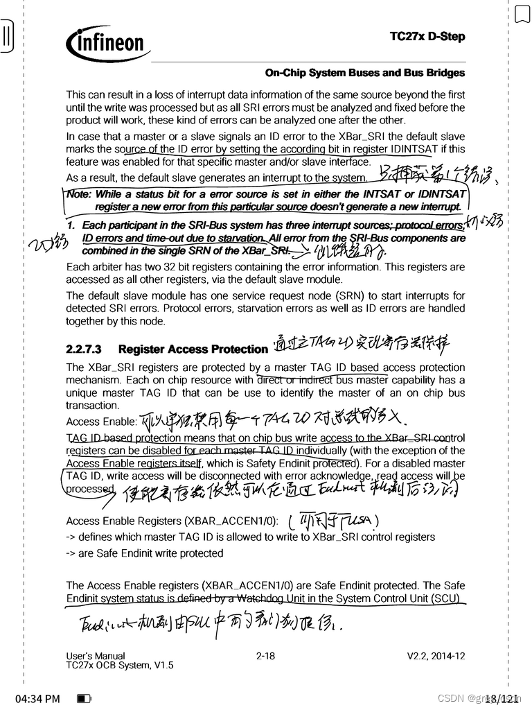 3. 通过TAG ID的机制可以实现寄存器的保护功能。可以独立的禁用每一个TAG ID对于总线的写入访问。但是,被禁用之后,使能寄存器依然是可以通过了EndInit机制之后进行访问的。而Endinit的机制是由SCU中的看门狗提供的。我觉得这样的功能,在考虑功能安全相关的设计的时候可以利用起来。