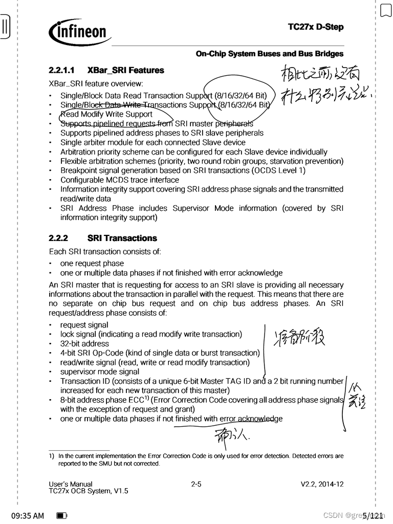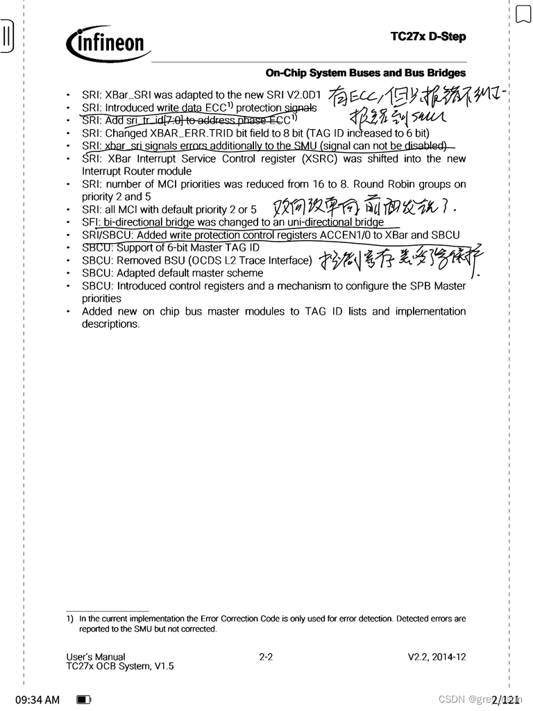 1. SRI 是有ECC功能的,但是这个ECC只能够提供报错不能够进行纠正。如果报错了,相应的错误会报到SMU,这种模式在AURIX的MCU上似乎是比较通用的做法。