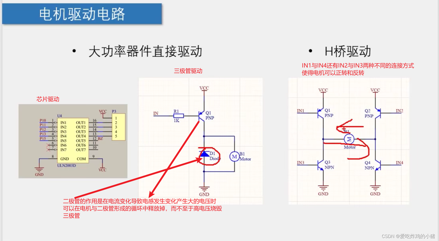这里的代码演示的是将电机一头接在VCC电源端口,另一端接在P1^0口