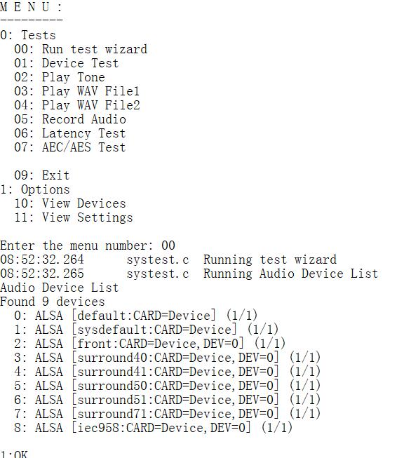 我主要用的是音频,所以我使用这个程序先检测一下我的NUC972板子上的声卡是否被正确加载,如下图所示: