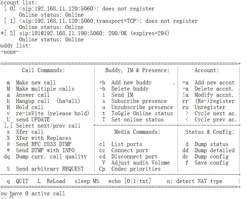 配置好服务器上的用户代理后,就可以运行PJSUA了: