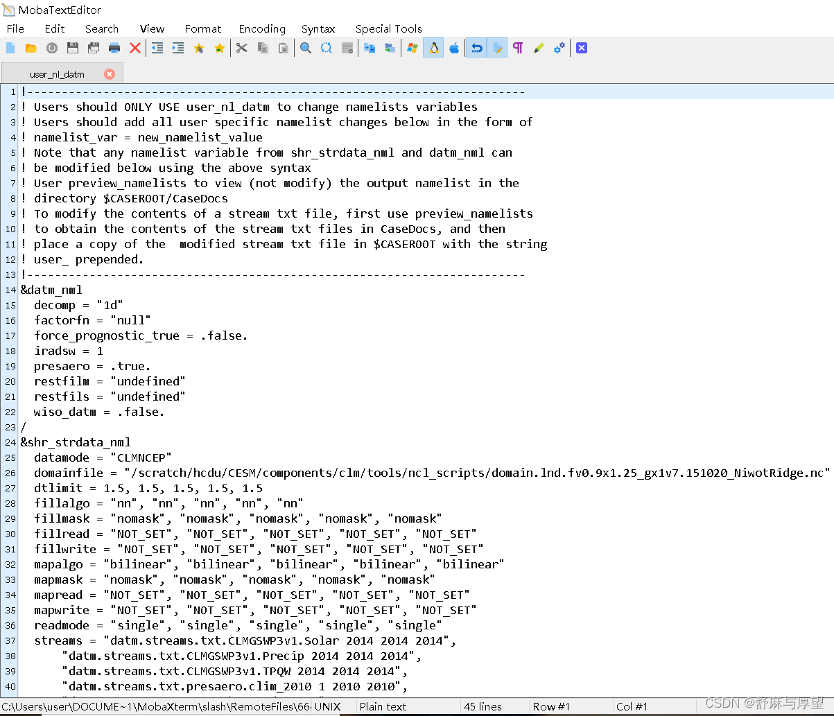 $ ./xmlchange DIN_LOC_ROOT_CLMFORC=~/data/inputdata/atm/datm7 #输入的大气forcing data路径