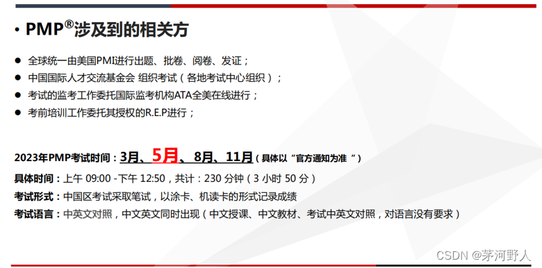 2023PMP大概考试时间 ,每年大多都是这个进度。考试费用大概3900元人民币(不包含培训费,各家培训费肯定不一样)