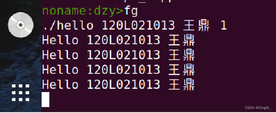 2jobs:查看当前终端放入后台的进程,只有hello一个
