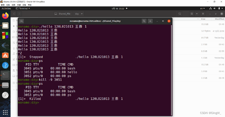 1ps:列出了当前系统中运行的进程,有如下3个,hello也在其中。