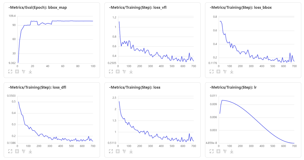 model.train(num_epochs=100,train_dataset=train_dataset,train_batch_size=16,eval_dataset=eval_dataset,pretrain_weights='COCO',learning_rate=.01,warmup_steps=24,warmup_start_lr=0.005,save_interval_epochs=1,lr_decay_epochs=[6, 8, 11],use_ema=True,save_dir='output/picodet_esnet_l',use_vdl=True)