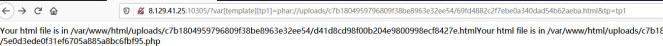 class Template{public $content;public $pattern;public $suffix;public function __construct($content){$this->content = $content;$this->pattern = "/{{([a-z]+)}}/";$this->suffix = ".html";}public function __destruct() {$this->render();}public function render() {while (True) {if(preg_match($this->pattern, $this->content, $matches)!==1) break;global ${$matches[1]};if(isset(${$matches[1]})) {$this->content = preg_replace($this->pattern, ${$matches[1]}, $this->content);} else{break;}}if(strlen($this->suffix)>5) {echo "error suffix";die();}$filename = '/var/www/html/uploads/' . md5($_SERVER['REMOTE_ADDR']) . "/" . md5($this->content) . $this->suffix;file_put_contents($filename, $this->content);echo "Your html file is in " . $filename;}