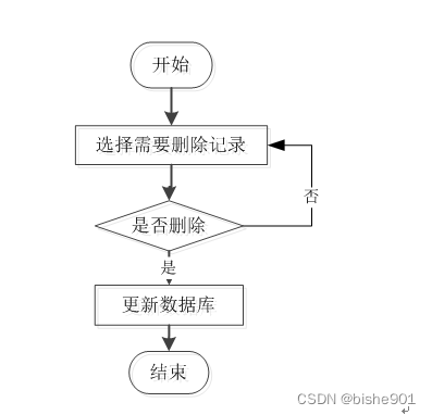 用户可选择要删除的信息进行信息删除操作,在删除信息时系统提示是否确定删除信息,是则删除信息成功,系统数据库将信息进行删除。删除信息流程图如图2-4所示。