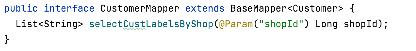 - 标号 3 位置:mapper 层,对于 mybatis 持久层框架来说,mapper 和 entity 共同实现了 ORM(对象模型到关系模型的映射)。一般来说,这里的代码长成这样(这里 CustomerMapper 类只是定义了 entity 类 Customer 的映射关系,以及自定义的数据操作方法):