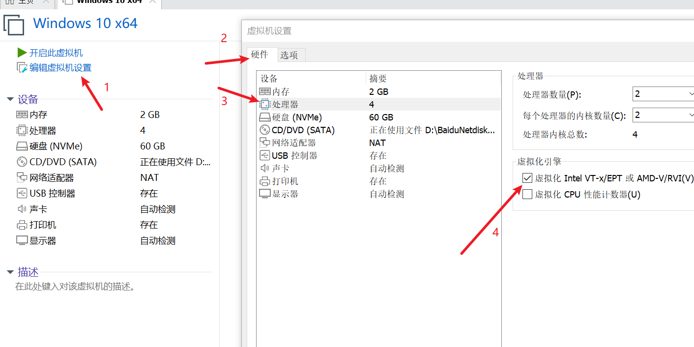 5.编辑虚拟机设置,启动虚拟化引擎,打勾。