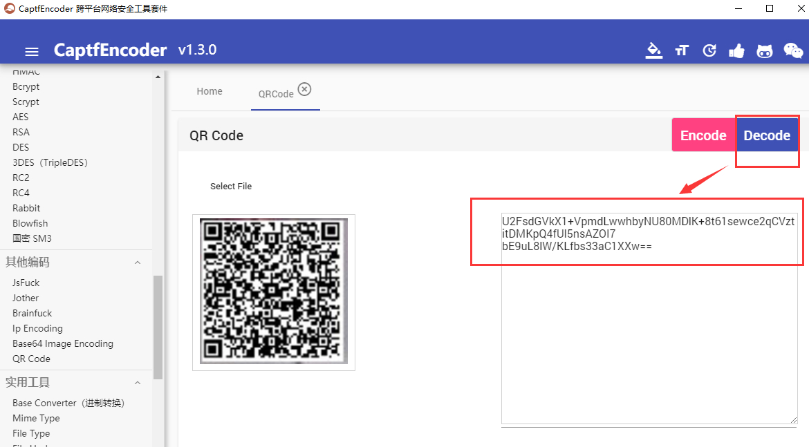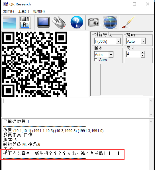 使用QR工具没解出来,手机扫出来了,那我们换其他工具来解: