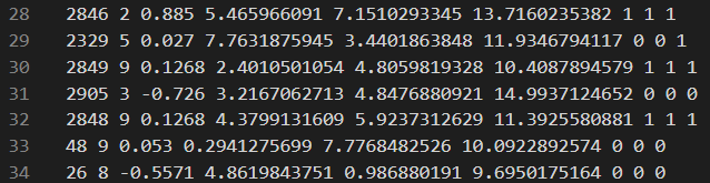 然后读取reax/c/bonds输出部分的每一帧。这里需要注意reax/c/bonds的输出中第一行需要读取的数据前只隔了7行,后面每帧与前一帧的间隔是8行。图方便我把所有间隔设置为了8,因此需要人为给第一帧前随便加一行。