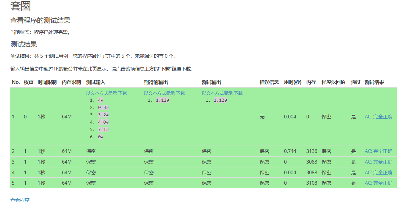 也不知道为啥,之前x、y设置为int超时了) - 规范数据类型,一开始用float去计算double的距离,会导致精度丢失而wa