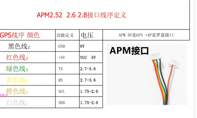 请注意,我们使用的磁力计是内置在GPS模块中的那一个,当然你也可以购买一个同款磁力计连接上去。GPS的磁力计端口见下图的SCL、SDA。