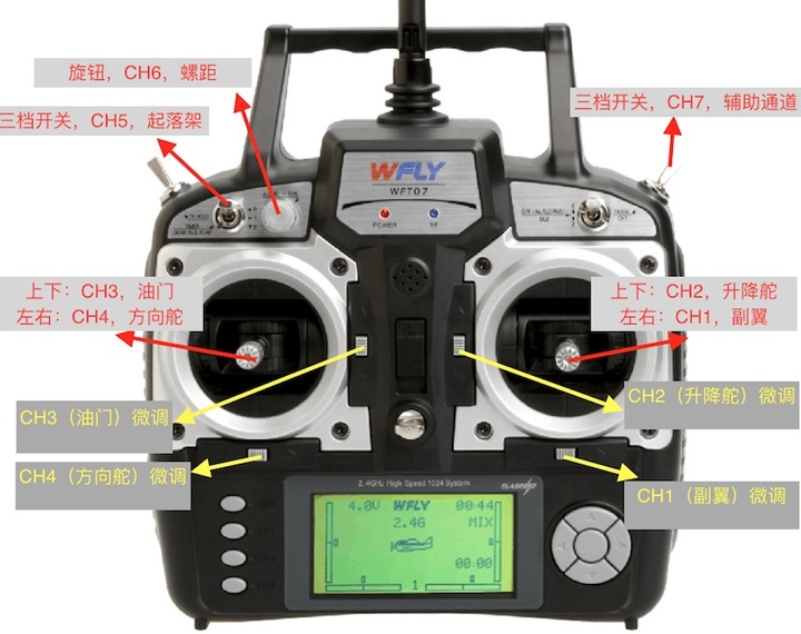 注意到我们使用了四个通道,也就是对应的遥控器的四个旋钮/摇杆。这是为什么呢?