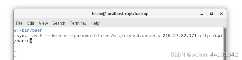 rsync -avzP --delete --password-file=/etc/rsyncd.secrets 210.27.82.171::ftp /opt/backup