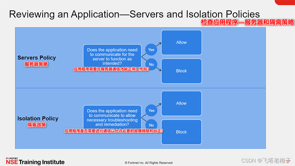 检查服务器策略和隔离策略的过程非常简单。在查看服务器策略时,你需要问一个问题:应用程序是否需要进行通信以允许服务器按预期工作?如果是,请修改为Allow。如果服务器可以在没有它的情况下正常工作,则将其留在Deny。
