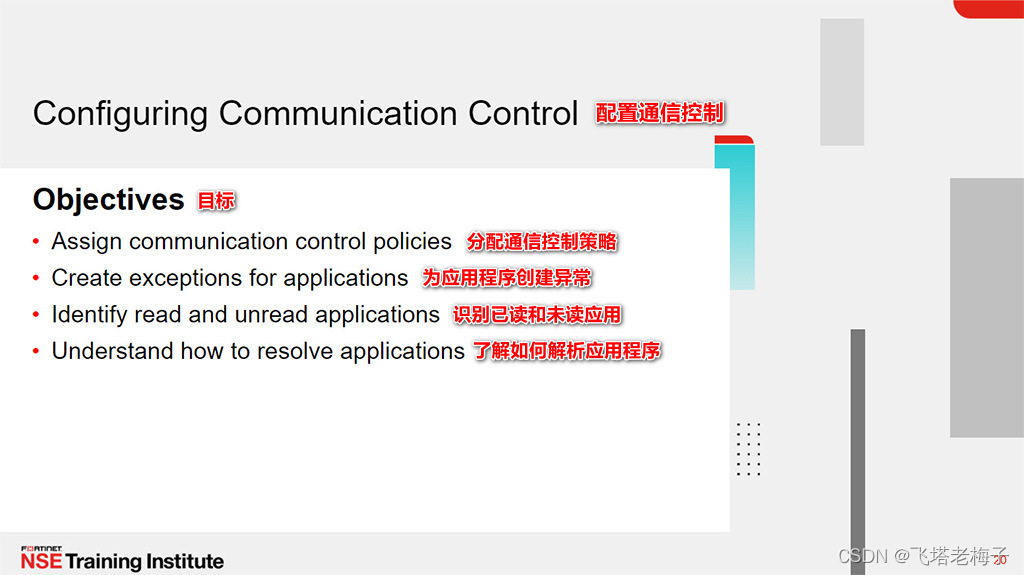 通过掌握本课涉及的目标,你学习了如何配置和管理通信控制策略和规则。