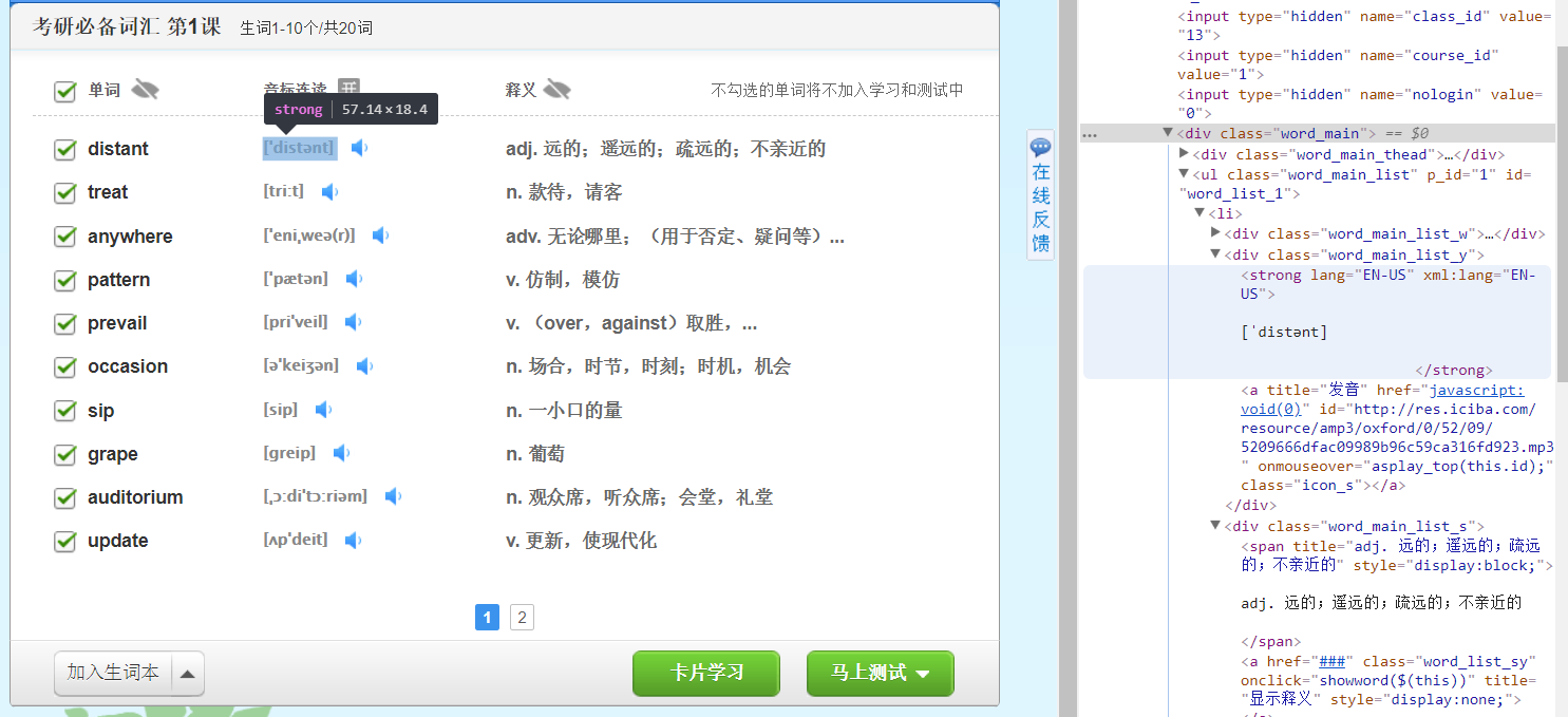 5获取course的HTML,有效信息为:单词、发音、翻译
