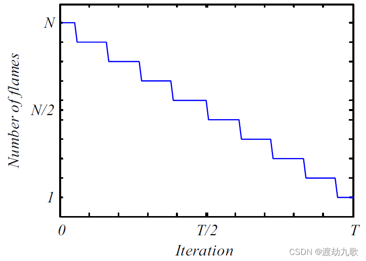个火焰。然而,飞蛾只在迭代的最后一步更新它们的位置。火焰数量的逐渐减少平衡了搜索空间的剥削和利用。